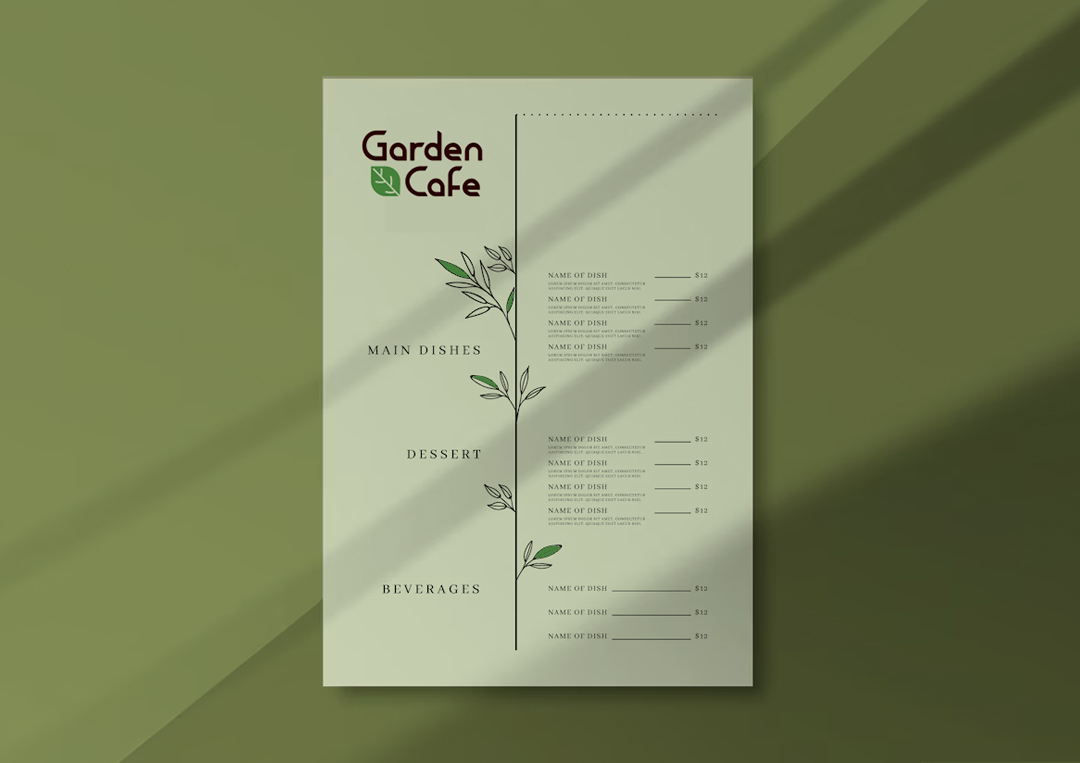 Garden Cafe is a cafe-restaurant in an ancient area in the heart of Tehran, near the Tehran market, in designing logo and visual identity it has tried to be inspired by the antiquity of the location.